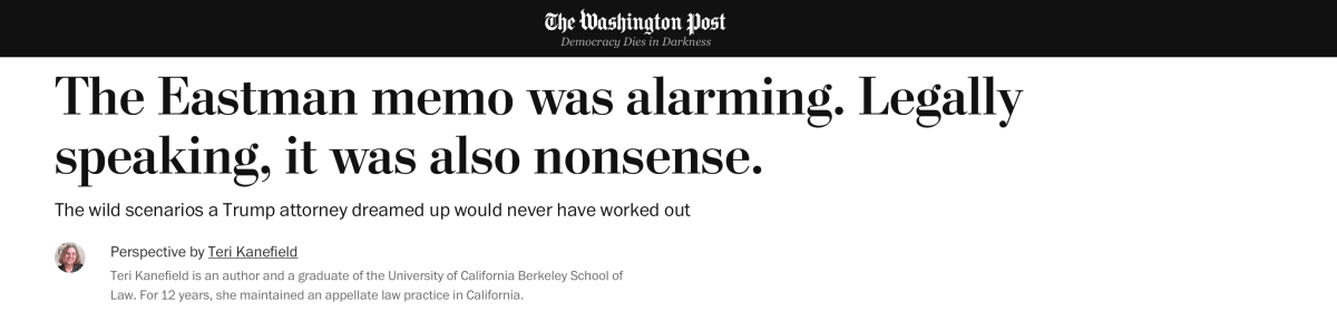 Before I talk about the latest with John Eastman, you may want a refresher on his role in Trump’s plot to overturn the 2020 presidential election. I wrote this piece for The Washington Post shortly after we learned of the existence of the now-famous Eastman memo. (If you click here, you can get past the paywall; I made the article free through my subscription.)