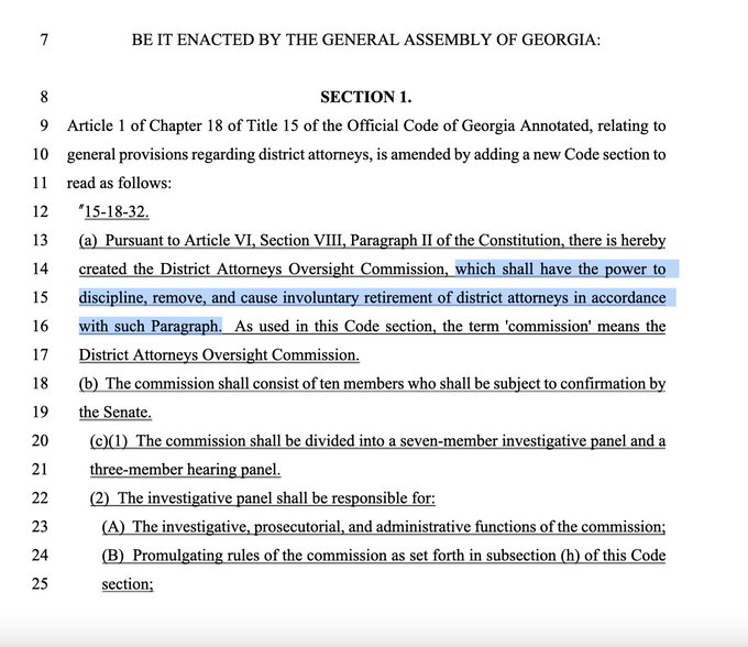 The proposed legislation is not a ploy to remove Fani Willis before she can indict Trump. The proposed legislation is a legislative branch power grab.